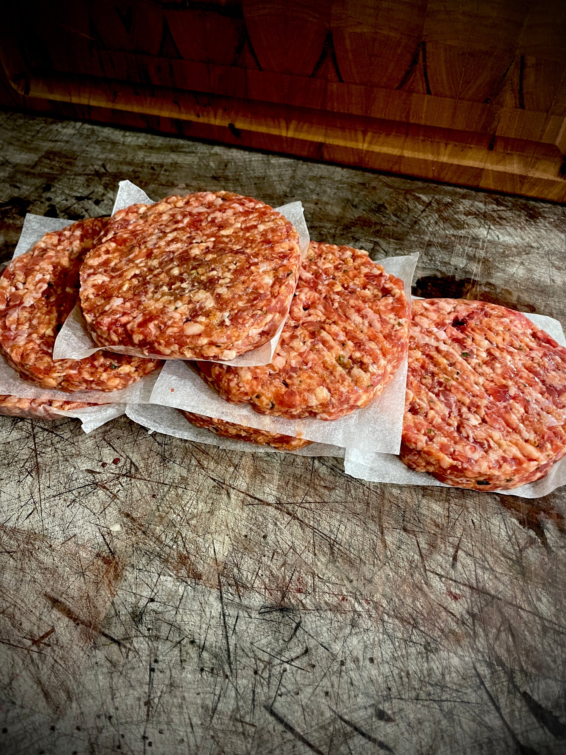 Our in house made and hand pressed beef burger patties. These are the go to for all tastes. Approximately 120 grams per burger