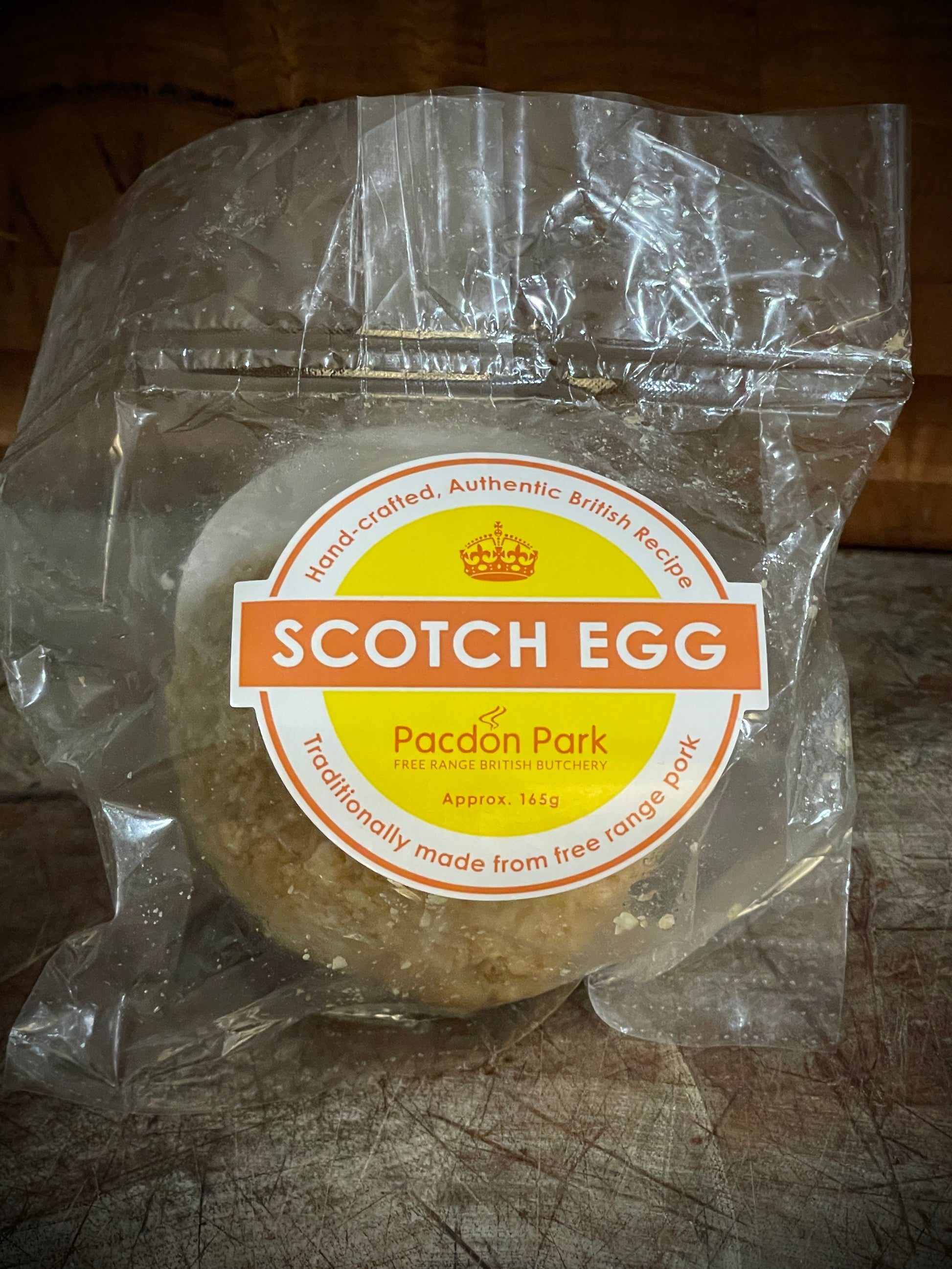 Traditional British scotch egg by Pacdon Park. Made with free range pork.